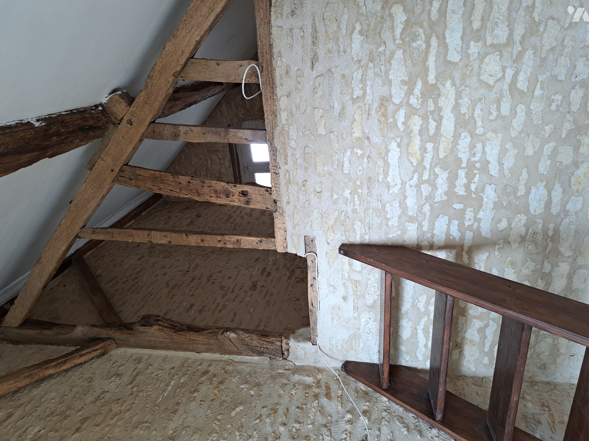 - à l'étage: palier, salle de bains, une grande chambre avec mezzanine.